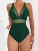 2025 New Cross-Border European And American Trade Solid Color Mesh Backless Sexy Bikini One-Piece Swimsuit Swimwear_desvips.com