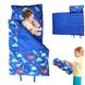 Soft and Fuzzy - Each toddler sleeping bag measures 53 x 21 x 1.5 inches and is perfectly sized for keeping your little one cozy. The cozy set includes a padded mat, blanket and pillow. The blanket is made of microfiber, and the padding has enough filling for a super-soft and fuzzy feel.
