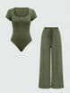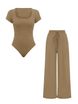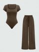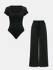 Autumn And Winter New Solid Color Small Pit Strip Casual Onesie Pants Fashion Two-piece Suit Women's Clothing