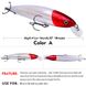 Mainly imitating the small fish visible in nature.Usually, small fish in nature have various different behavioral patterns, such as swimming alone, raising their heads to touch the water, swimming leisurely on the surface, escaping when encountering enemies, struggling for survival, finding food by hitting the bottom, etc. These actions can be freely manipulated by anglers, and some require lures.