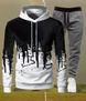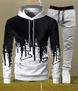 Crazy Muscle Men's Sports Casual Hooded Graffiti Print Slim Fit Fashion Simple OM Set