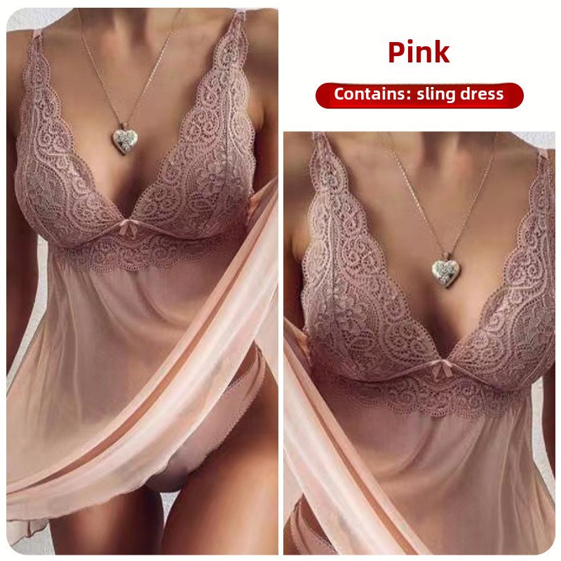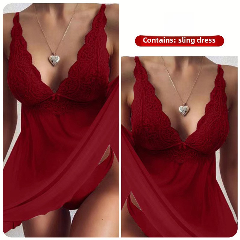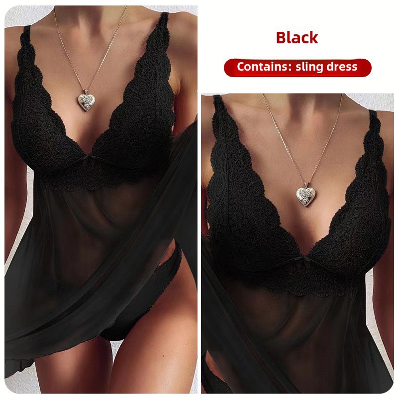 Crisp sexy lingerie foreign trade European and American export sling women's sexy lace perspective elegant sexy pajamas suit
