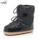 European and American Winter Space Boots Thick Sole Sequin Real Fur Winking Short Boots Snow Boots for Girls and Children Parent-Child Trendy Ski Shoes