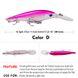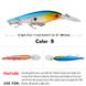 Product features: This product is a minnow-type hard bait, imitating the appearance and slender body of a minnow with fins.There are center of gravity shifting steel balls inside that can move to the tail when thrown, increasing the casting distance.The aerial posture is stable and smooth, making it less prone to spinning and easier to cast.Various colors and patterns greatly increase the chance of attracting bait.