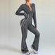 Frosted Color-Block Zipper Stand Collar Yoga For Women Outdoor Running Sports Hip-Lifting Jumpsuit Flared Pants