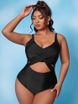 Large Size Solid Color Swimsuit Women's Conservative High Waist Tight One-piece Bikini Swimsuit