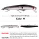 In terms of body design, the essential principle of Minnow lures is to be slim and streamlined.In addition to requirements in shape and color for this type of lure, another important point is that it must have a vulgar swimming style. 0k Don't get me wrong, vulgar swimming style is an unremitting pursuit of lure species, so there will usually be plastic or wooden small lip pieces or pressure plates under the lure near the gill area. These are typically extended forward and downward near the gill area, maintaining an angle of about thirty to forty-five degrees with the mouth. The surface of the lip piece is flat, with a nearly semi-circular arc at the front edge; there are also those that place the lip piece under the lure's mouth, also extending forward and downward but at varying angles and lengths. The shape changes even more; some are gradually wider at the front, while others are just the opposite, gradually narrowing or even forming an acute angle. These lip pieces themselves have various types of grooves, mainly made of plastic or metal sheets, with metal lip pieces being prominentUsually the angle can be adjusted.Most of the lures themselves float on the water surface. By reeling in the line, the lure dives under the pressure of water from the lip piece. The depth is determined by the size, angle, and reeling speed of the lip piece.