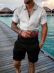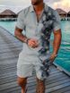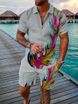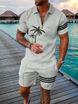 Men's Clothing polo shirt solid color plus size casual 3D printed zipper short sleeve suit lapel collar men's short sleeve
