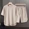 Men's Clothing Summer fashion brand new short sleeved T suit men's loose large size shorts set advanced handsome waffle two piece suit