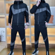 Men's Spring and Autumn Fashion Comfortable Breathable Two piece Splicing Stand up Collar Top Korean Version Slimming Leisure Sports Set Handsome