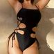 New Bikini Black Hollow Side Waist Tie One-Piece Swimsuit