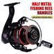 RM Fishing Reel Configuration: Reinforced Nylon Reel Seat, Semi-Metallic Arm Interchangeable Left and Right, Metal Line Cup for Smoother Line Release, No Line Damage or Snagging; Copper Gear Rod Transmission, Zinc Alloy High-Hardness Gear Plate, Smooth Feel.