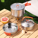 Outdoor 304 stainless steel camping cookware three piece soup pot kettle set foldable frying pan