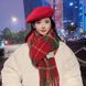 Plaid Scarf For Women, Autumn Winter 2024 New Style, Dry Rose Pink, Atmosphere And High-end Feel, Versatile Thickened