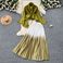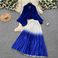 Ruffled Butterfly Sleeve Gradient Tie Cape Short Coat Top + Gradient Pleated Skirt Two-piece Suit