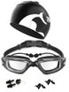 Silicone Anti Fog Swimming Goggles + Silicone Nose Clip Earplugs + Silicone Fishtail Cap 5 Piece Set