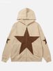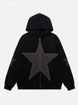 Street oversized loose fitting women's pentagonal star patch embroidered printed hoodie personality zipper sweater men's_desvips.com