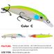 Mainly imitating the small fish visible in nature.Usually, small fish in nature have various different behavioral patterns, such as swimming alone, raising their heads to touch the water, swimming leisurely on the surface, escaping when encountering enemies, struggling for survival, finding food by hitting the bottom, etc. These actions can be freely manipulated by anglers, and some require lures.