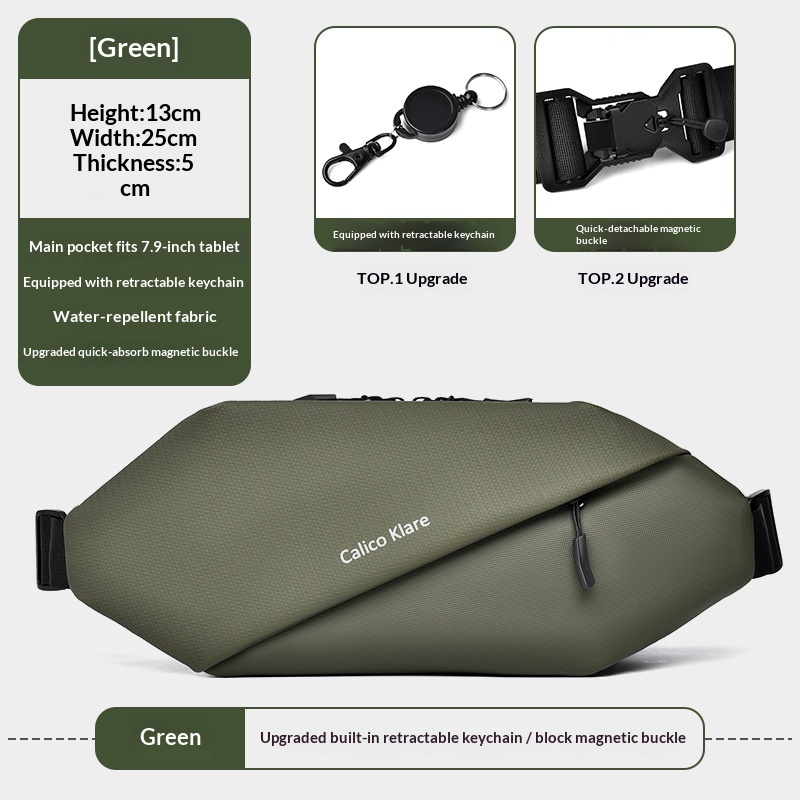 Style:Cross-border Trend,Item Number:2032,Material:PVC,Functionality:other,Brand:Calico Clear,Pattern:Solid Color,Trendy Elements:wrinkles,The texture of the lining:Polyester Cotton Blend,Color:Black, Olive Green,We have authorized private labels available:yes,Year and season of release:Autumn 2025,Applicable Scenarios:Casual Outfit,Applicable Gender:Male,Product Category:Men's Chest Bag