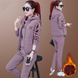Thickened and plush sportswear for women in autumn and winter, new Korean version of warm and fashionable set, hooded three piece set