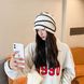 Women's Autumn Winter New Rolled Edge Striped Ear Protection Warm Internet Celebrity Slouchy Knitted Hat Korean Version