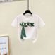 Women's Clothing fashion color matching embroidery short-sleeved T-shirt raw edge hip-wrapped A-line high waist denim skirt