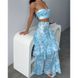 Women's clothing new suspender chest wrap printed sleeves backless tops slit two piece set