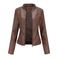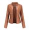 Women's Clothing slim motorcycle thin spring and autumn large size stand collar leather jackets_desvips.com
