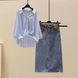 Women's Clothing Summer suit new striped shirt with high waist denim skirt two piece suit