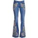 Women's Embroidered Flared Pants Slim Washed Floral Pattern Blue Jeans Casual High-Waisted