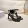 Women's fashion square head patent leather flower open-toed high heels with every summer French sandals