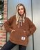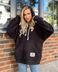Women's flannel loose hooded long-sleeved pullover plush sweatshirt