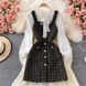 Women's temperament bow tie shirt two-piece suit tweed plaid suspender dress